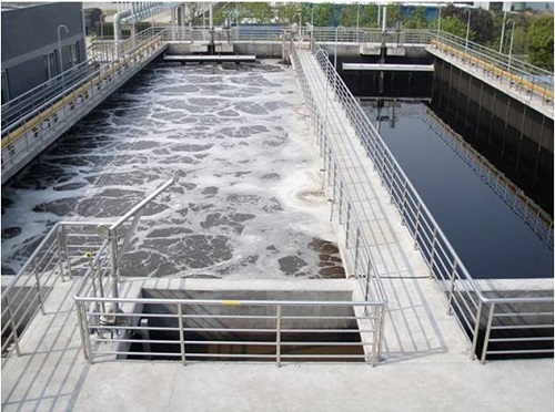 ⑤ 化學(xué)混凝沉淀池。該池的主要作用是去除SBR出水中的懸浮物和部分色度。池體寸.0m×6.0m×3.5m,鋼筋混凝土結(jié)構(gòu),分2格,一格為化學(xué)反應(yīng)池,投加PAC和PAM藥劑,并裝有一臺(tái)攪拌機(jī);另一格為沉淀池,沉淀池配有圓筒式導(dǎo)流筒及排泥系統(tǒng),采用穿孔水壓式排泥。